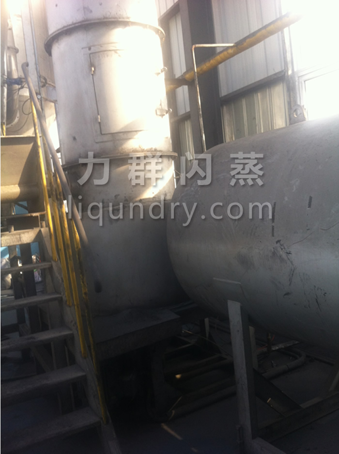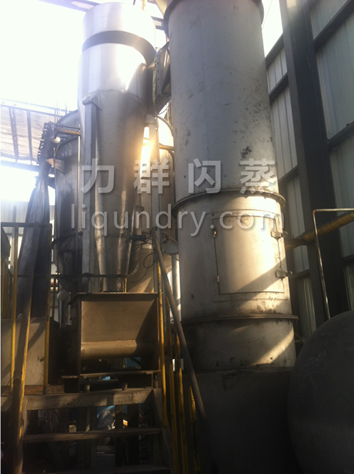 經(jīng)換熱器加熱后的潔凈空氣被鼓入進風(fēng)口,以適宜的速度旋入干燥室底部的環(huán)隙,然后按切線方向進入干燥室,并呈螺旋狀上升:同時,物料則由可無級調(diào)速的加料器定量加入塔內(nèi)。在干燥塔內(nèi),物料與熱空氣進行充分、高效的質(zhì)熱變換,被干燥的粉狀物料隨同熱風(fēng)一起輸送至分離器,其中成品收集包裝,而尾氣則進一步經(jīng)除塵裝置處理后排空。